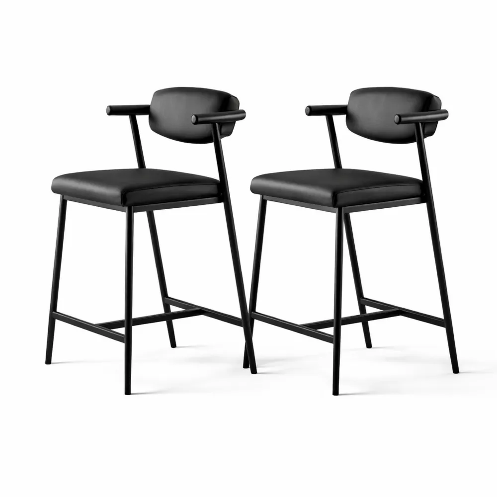 Seduta girevole con altezza regolabile tramite leva metallica. Struttura in acciaio con poggiapiedi circolare e base con guarnizione antiscivolo.